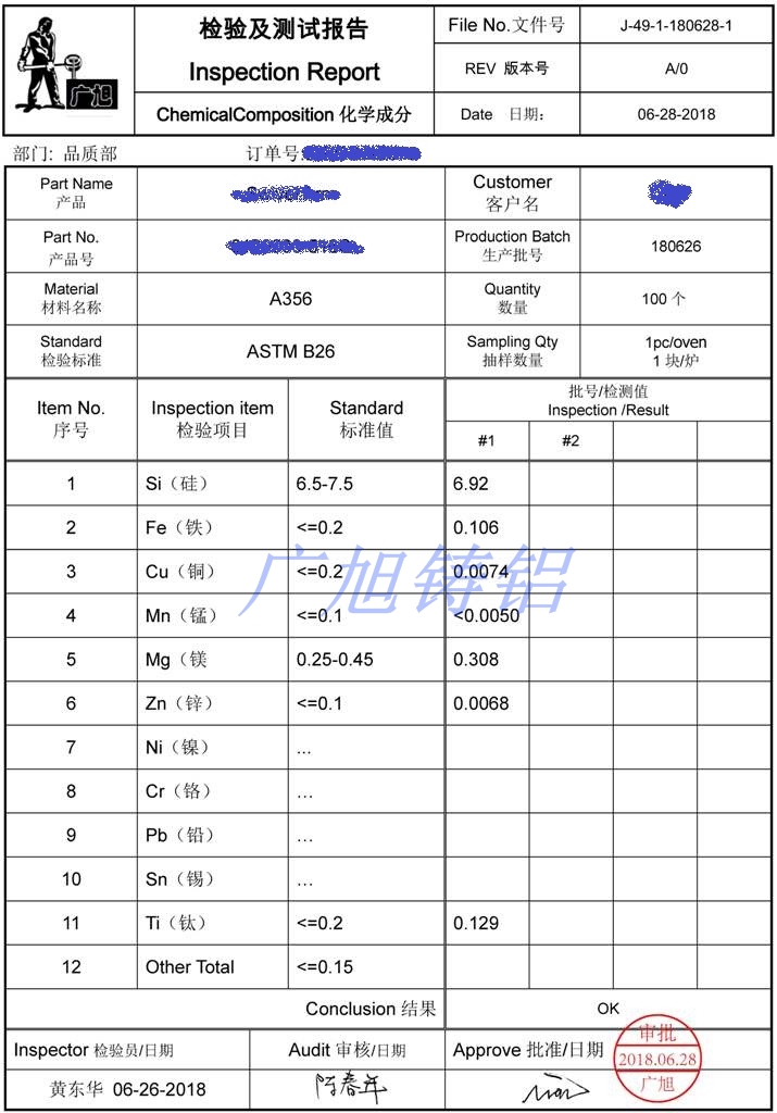 A356-T6, 319F, 413, A380 ,